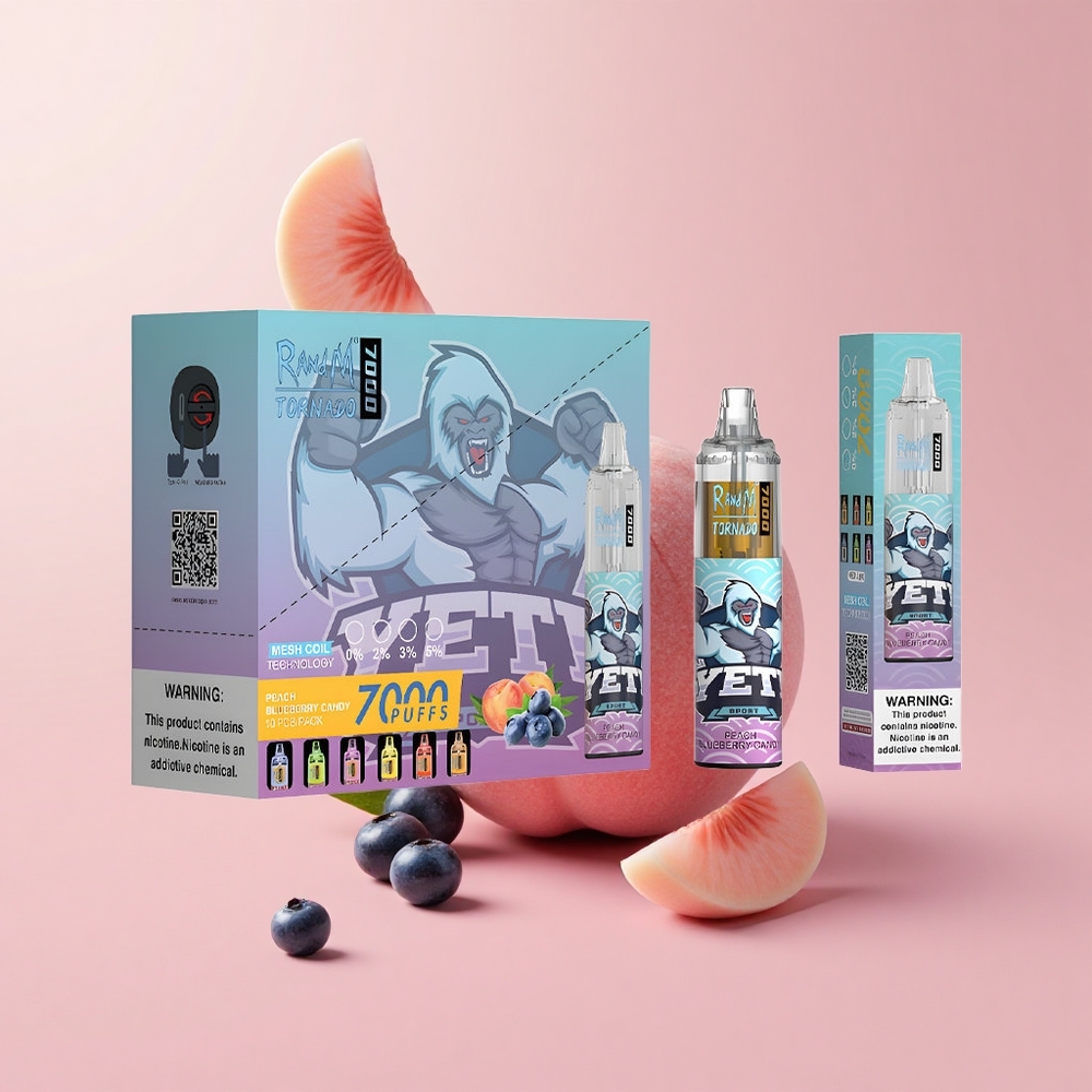 Праскова Синьо боровинка RandM Fumot Tornado 7000 пуфове RGB Light Bulgaria vape wholesale
